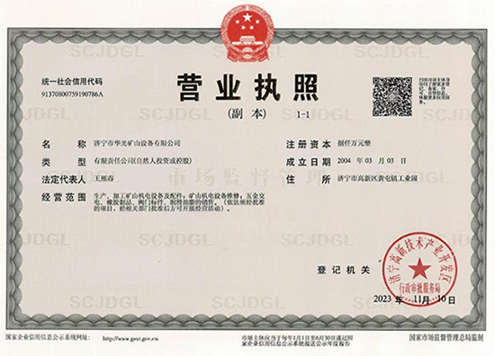 JI NING SHI HUA GUANG KUANG SAHN SHE BEI CO.,LTD.
